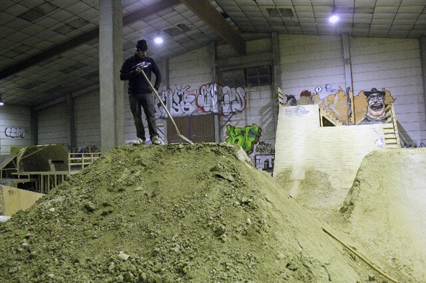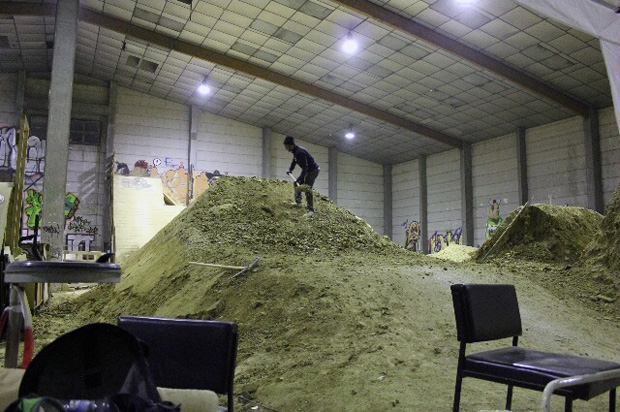 Am Wochenende findet in Mainz die Telekom Local Support Dirtchallenge statt. JB Peytavit und Amir Kabbani bringen deshalb gerade die Dirthügel in der Halle 5 auf Vordermann. „Hier ein bisschen mehr, da ein bisschen weniger und dann passt das super!“ waren die Worte von den beiden Franzosen bei Baubeginn, und da sie erfahrene Trails-Bauer sind, könnt ihr sicher sein, dass die Hügel gut sein werden.
