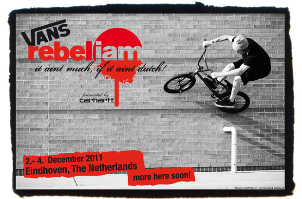 20.000 Euro gibt es auf diesem Pro-only-Event zu gewinnen und wie beim Vans rebeljam üblich, wird extra für den Contest ein Park gebaut, der auch auch über den Wettbewerb hinaus in der Stadt stehen bleiben soll. Gestartet wird vom 2.-4. Dezember in den Disziplinen Street, Park und erstmalig auch Flatland, eine vorherige Qualifikation oder Einladung ist nicht notwendig. Wenn du also denkst, dass du das Zeug hast, gegen Fahrer wie Bruno Hoffmann in den Kategorien Style, Kreativität und Hard Trick zu bestehen, dann kannst auch du dein Glück in Eindhoven versuchen.