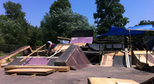 Bei über 30 Grad im Schatten sind die Aufbauarbeiten für die BMX Masters im Kölner Jugendpark im vollen Gange. Icepickgrind-König Nicoteen gehört zum Bautrupp und...