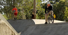 36 und noch kein bisschen leise: Colony-Chef Clint Millar zeigt uns in einem australischen Betonpark, wofür ein fast komplett ausgestattetes Freestyle-Rad mit vier Pegs, Rotor...