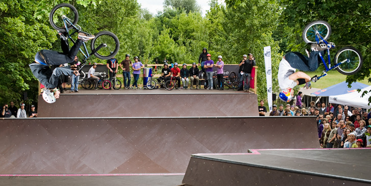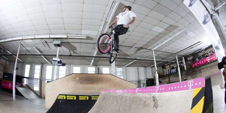 Michael Beran hat in seinem Finalrun auf dem Bike Hall Contest wieder einen 360 Bikeflip to Tailwhip gemacht und ist auch ansonsten überzeugend Fahrrad gefahren.