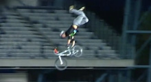James Foster hat auf einer Nitro-Circus-Show im australischen Adelaide einen dreifachen Rückwärtssalto über die Gigant-A-Ramp angedreht und ist erstaunlicherweise einigermaßen unbeschadet aus der Sache rausgekommen.