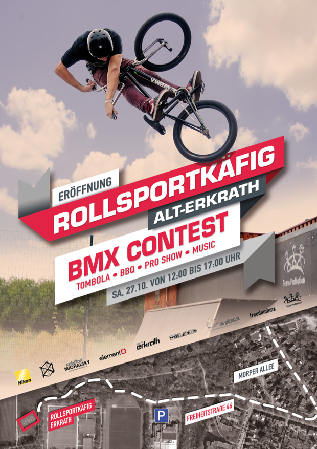 Ein paar Elemente des BMX-Masters-Parcours haben in Erkrath ein neues Zuhause gefunden und können bei der Eröffnung des Rollsportkäfig-Skateparks angetestet werden.