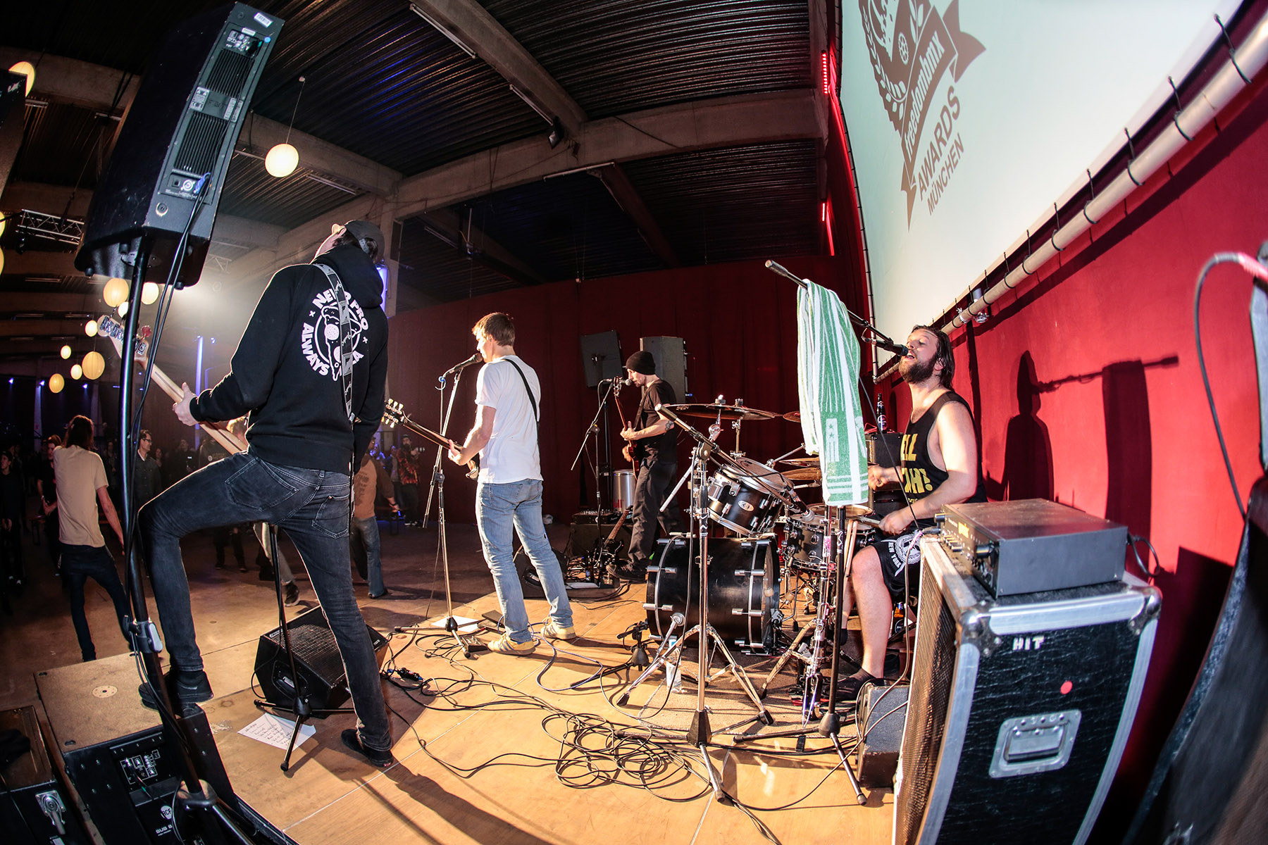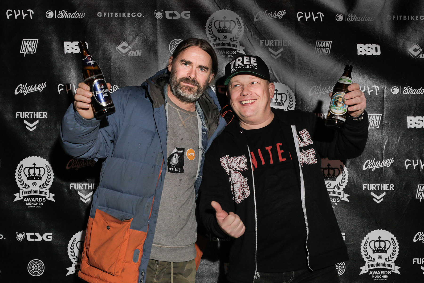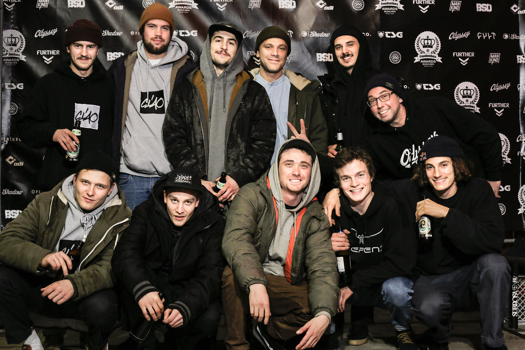 Zu einer richtigen Preisverleihung gehört natürlich eine Fotowand, vor der man sich dem Anlass entsprechend in Pose werfen kann. Wie schon in den Jahren zuvor, stand selbstverständlich auch auf der sechsten Auflage der freedombmx Awards, die am vergangenen Samstag in München über die Bühne gingen, so ein Ding. Der Unterschied zu anderen Preisverleihungen: Hier wurden nicht sündhaft teure Designerklamotten vorgeführt, sondern von in Hoodies gehüllten jungen und junggebliebenen Menschen sowohl Bierflaschen als auch Mittelfinger in die Luft gereckt.