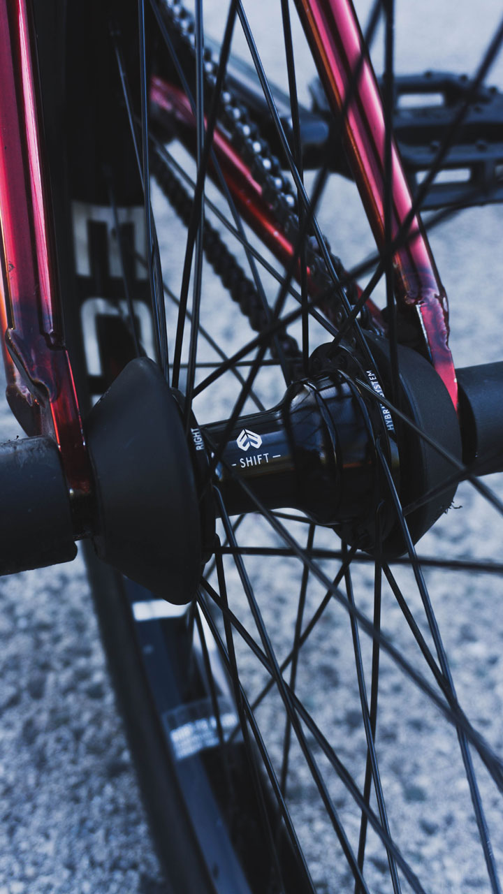 Laufräder: éclat BONDI Rims mit éclat CORTEX Front Hub vorne und éclat SHIFT Freecoaster/Cassette hinten