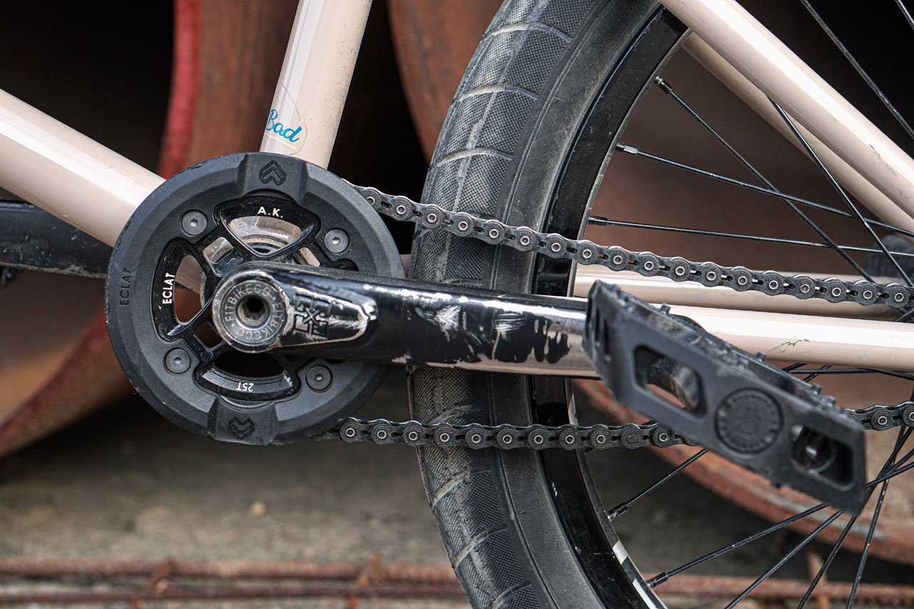 Puh, gute Frage. Im Endeffekt ist mein Bike nicht wirklich darauf ausgelegt oder irgendwas speziell dafür bestimmt. Ich liebe Fakie Grinds und das Rad fährt sich einfach nur unnormal gut.