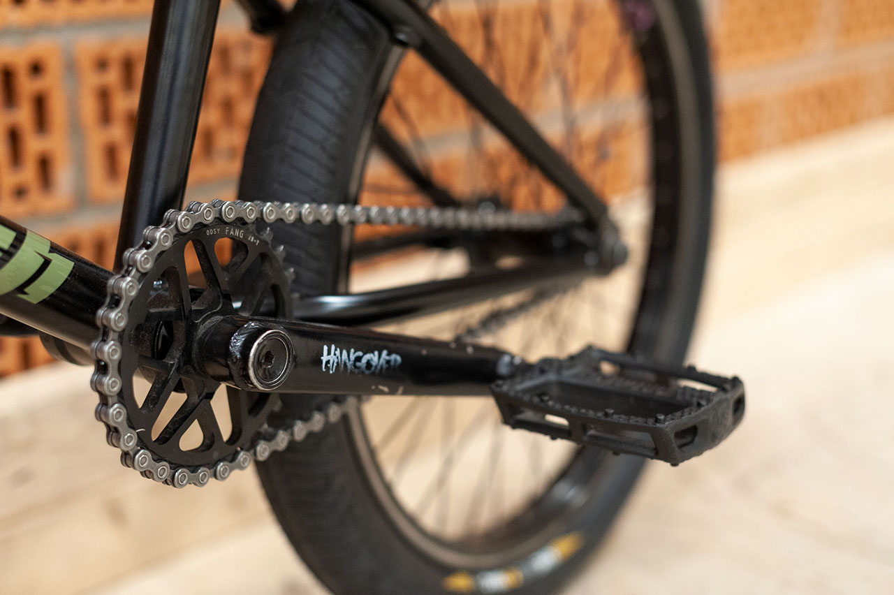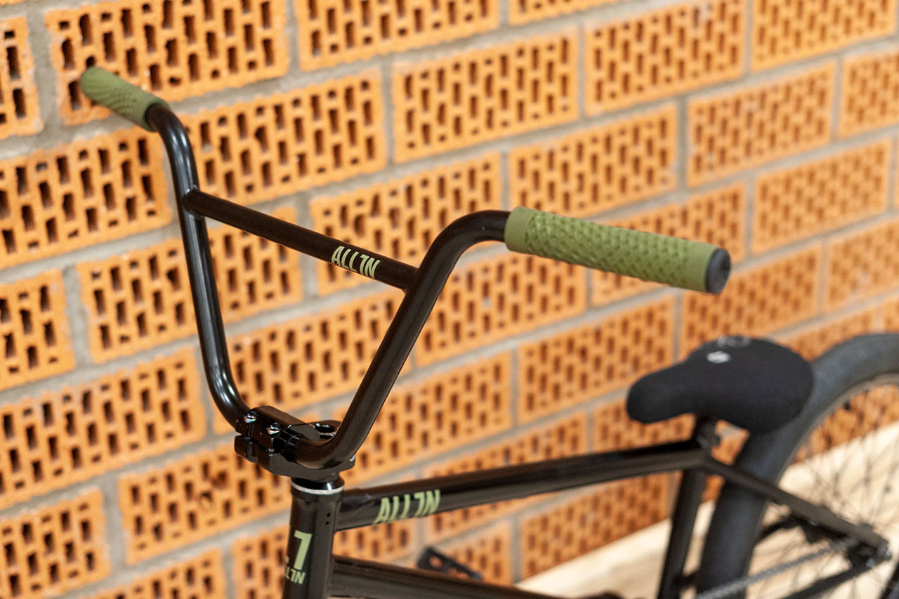 Rahmen: ALL IN Rush in 20,6″ Gabel: Demolition Royal Lenker: ALL IN Big Bet in 9″ Griffe: Cult x Vans Lenkerenden: Cult Bremsanlage: Vans-Schuhe Vorbau: Salt Topload Steuersatz: No Name Sattel: ALL IN Backyard Collaboration Seat Sattelstütze: ALL IN Blaze Kurbel: Total BMX Hangover in 165 mm Tretlager: ALL IN Roulette Pedale: Colony Fantastic Kettenblatt: Odyssey Tom Dugan Fang Übersetzung: 28/9 Kette: Odyssey “Key Chain” Solid Reifen: KHEbikes Mac 2+ Laufräder: Odyssey Quadrant Rims mit Odyssey “Antigram”-Naben und “Laser Stainless Double Butted”-Speichen von SAPIM Modifikationen: Lenker um 2 cm auf beiden Seiten gekürzt Reifendruck: 4 Bar Körpergröße: 1,65 m Gewicht: 9 kg