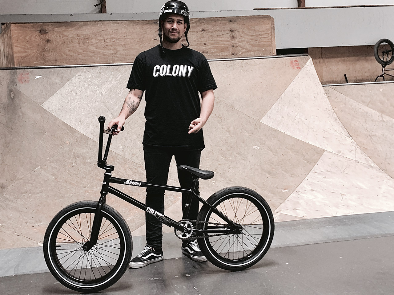 Rahmen: Colony Blaster in 21″ (Chris James Signature) Gabel: Colony Sweet Tooth (25 mm) Lenker: Colony Bio Mech Bar in 9,3″ Griffe: ODI Longneck soft Lenkerenden: ODI Standard Bremsanlage: – Vorbau: Colony Squareback Steuersatz: Colony Sattel: Colony Plume Seat (Jayden Fuller Signature) Sattelstütze: Colony (Pivotal) Kurbel: Colony Venator (175 mm) Tretlager: Colony Pedale: Colony Fantastic Plastic Kettenblatt: Colony Blaster Übersetzung: 28/9 Kette: Shadow Interlock Reifen: Colony Griplock in 2,35″ Laufräder: Colony Wasp Lite 9t auf Colony Contour Rim hinten, Colony Pintour Front Wheel vorne Hubguards: – Pegs: – Modifikationen: Lenker auf beiden Seiten 5 mm gekürzt Reifendruck: 5,5 Bar Gewicht: ca. 9-10 kg?! Körpergröße: 1,78 m