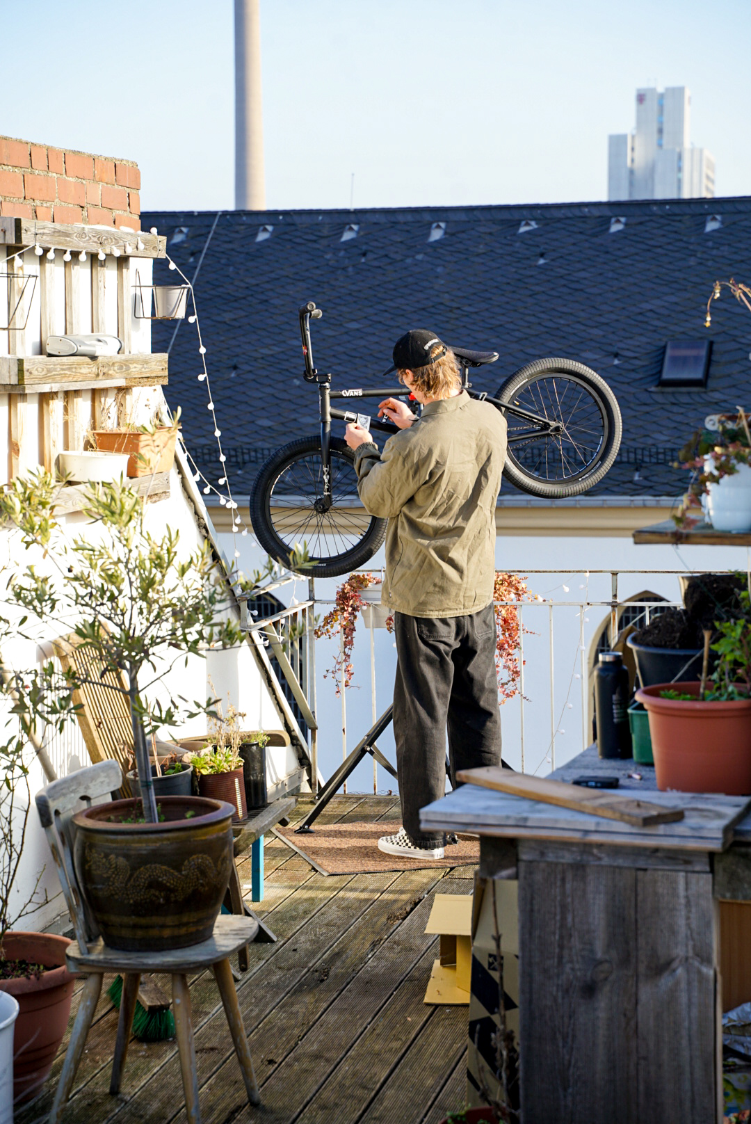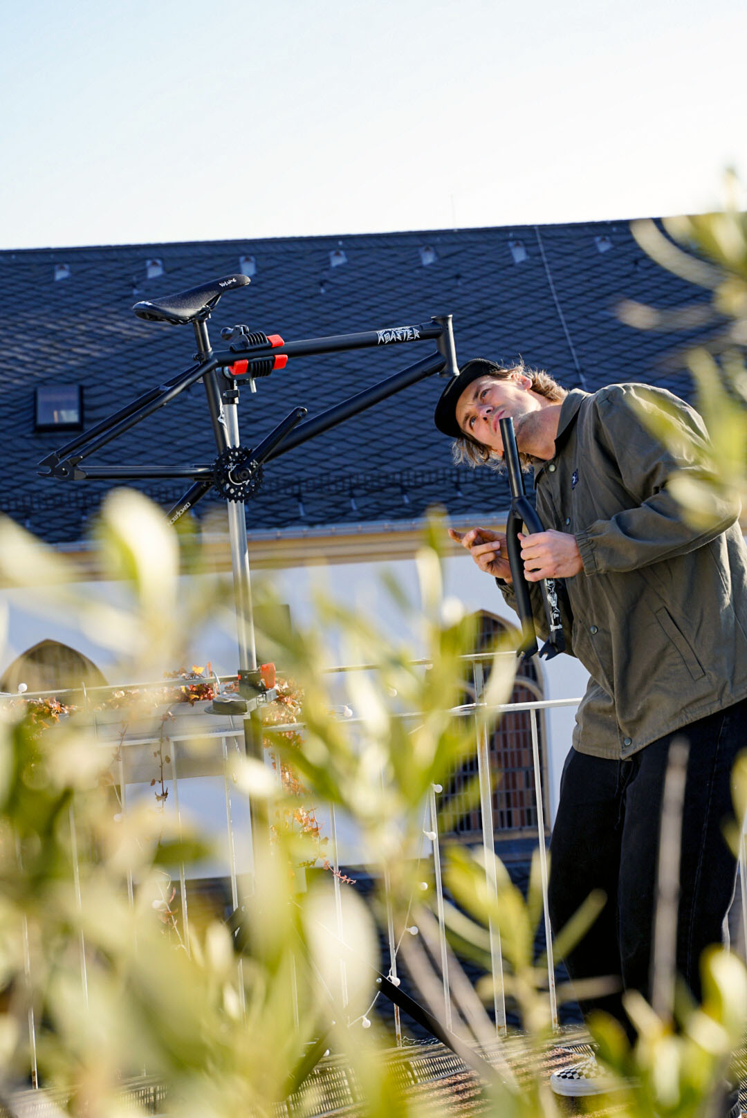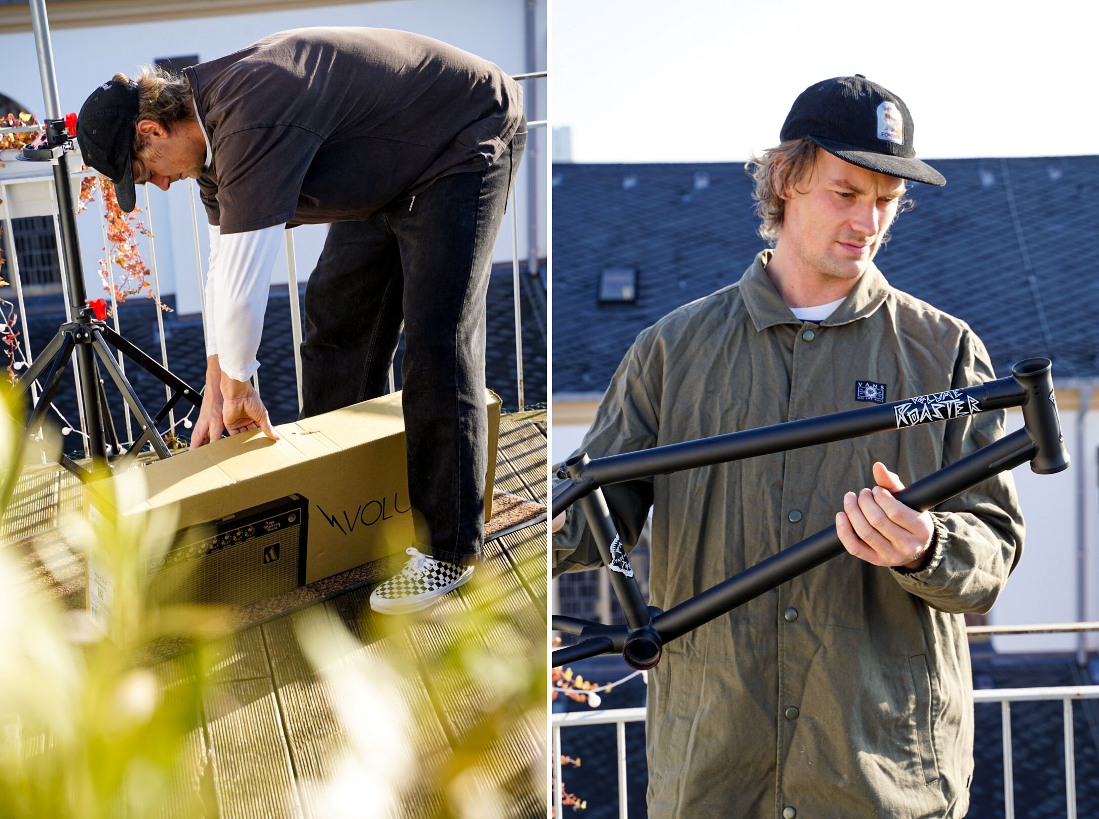 Ich fahre ja mittlerweile ziemlich verschiedene Spots, alle voran natürlich Schüssel mit die Jungs, und da dachte ich, dass ein bisschen kürzerer Rahmen ganz entspannt sein könnte. Meiner Meinung nach sind aber eh die anderes Specs wie Hinterbau, Tretlagerhöhe und Steuerrohrwinkel, viel aussagekräftiger als die Oberrohrlänge. Deswegen ist der Rahmen also immer noch Transition as.