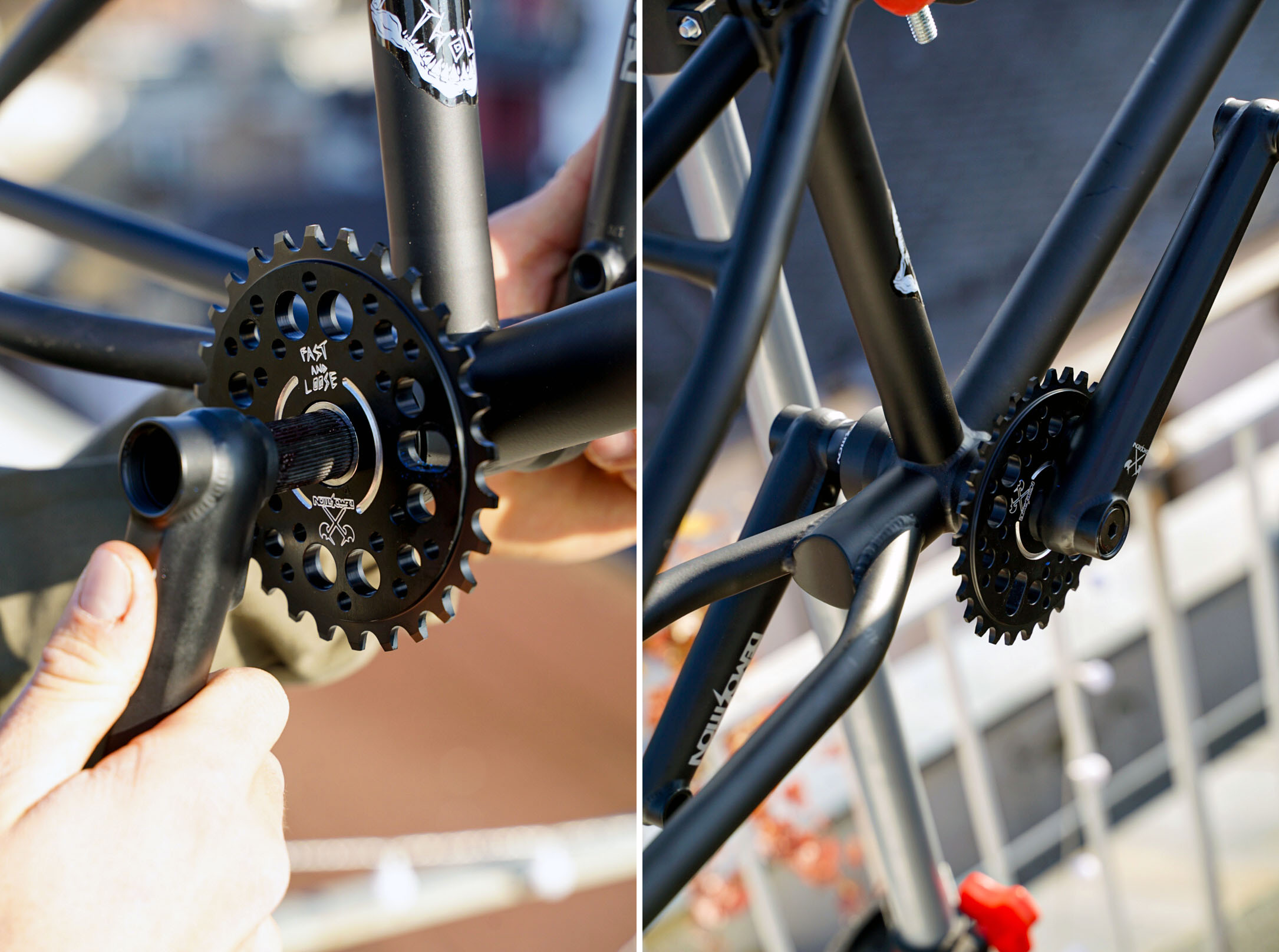 Das hatte mit meinem Rücken zu tun. Mir ist nämlich aufgefallen, dass Trails fahren die angenehmste Möglichkeit war, um BMX zu fahren. Solange man durchkommt, versteht sich. Für den Fall, dass das aber mal nicht passiert, habe ich mir die Bremse angebaut. Rentnerstyle eben. Habe echt überlegt, ob ich mir an der neue Karre wieder eine anbaue, aber mich entschieden, das erstmal nicht zu tun. Jetzt muss ich halt wieder mehr ne Katze sein, falls mal was schief läuft. Und sind wir mal ehrlich, ohne Bremse sieht das Rad schon schicker aus.