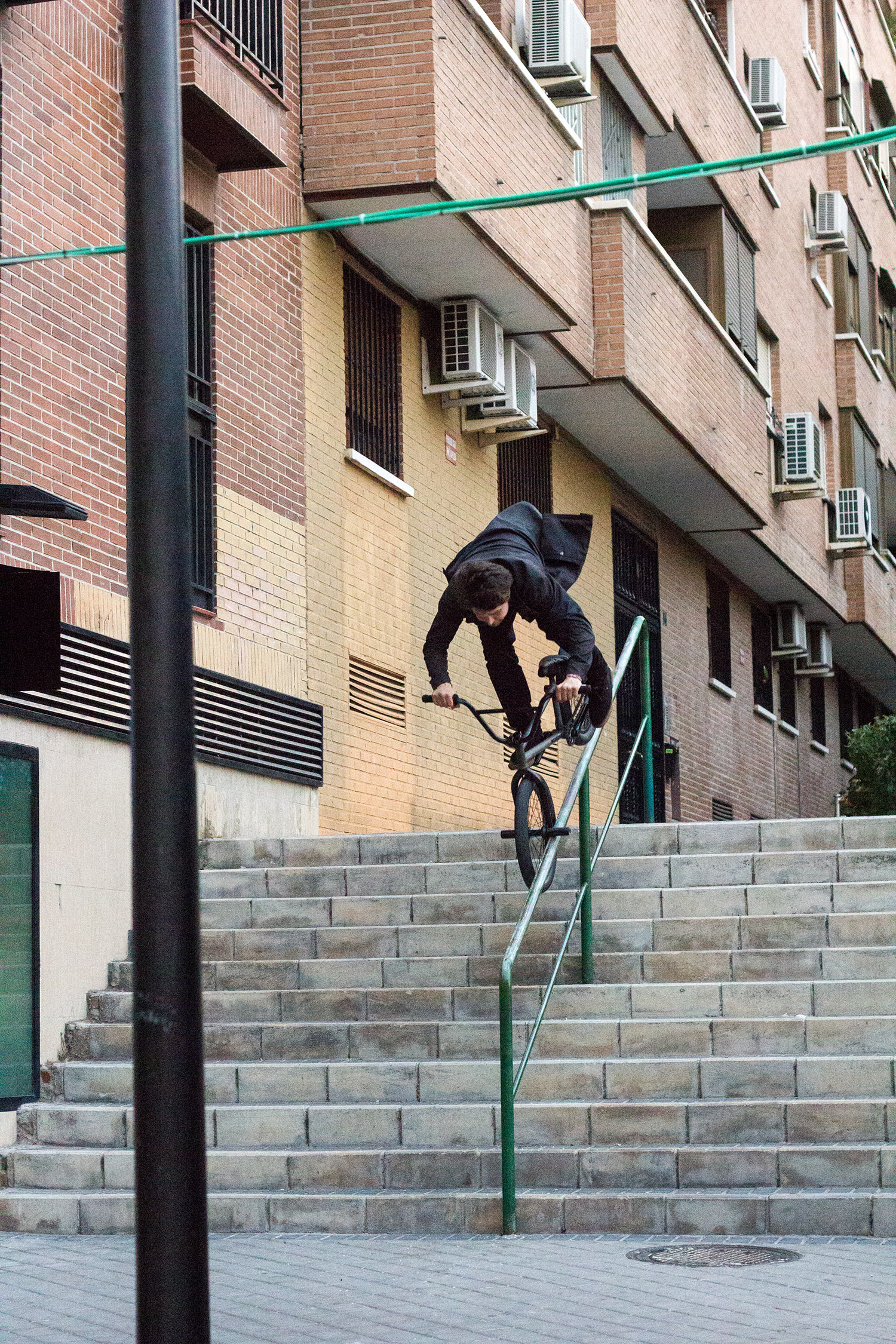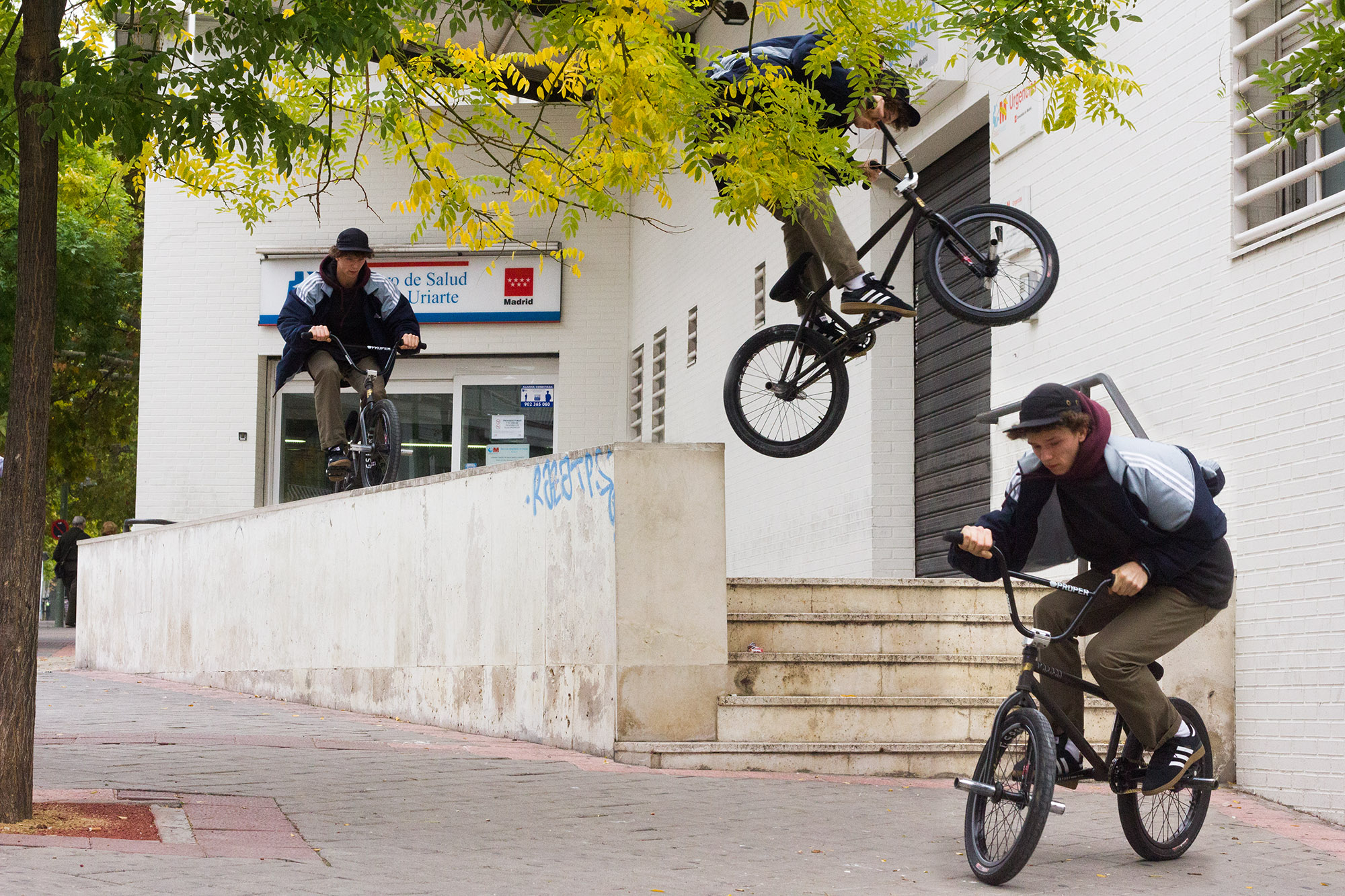 Wir wussten bereits vor unserem Trip, dass Spots in der Innenstadt von Madrid eher spärlich gesät sind. Aus diesem Grund haben wir uns ein Apartment in Vallecas gemietet, das ist ein relativ armer Vorort im Süden der Stadt, in dem Immigranten und Arbeiter recht einträchtig miteinander leben. Die meisten Fotos für diesen Artikel wurden im Umkreis von anderthalb Kilometern von unserem Apartment geschossen, in dem wir uns einquartiert hatten. Angesichts der vielen Spots in der Nähe mieden wir die öffentlichen Verkehrsmittel und verbrachten stattdessen die meiste Zeit in der Nähe des Fußballstadions von Rayo Vallecano. Hier finden sich neben zahllosen Spots auch viele kleine Läden, billige Unterkünfte und der ein oder andere Dealer.