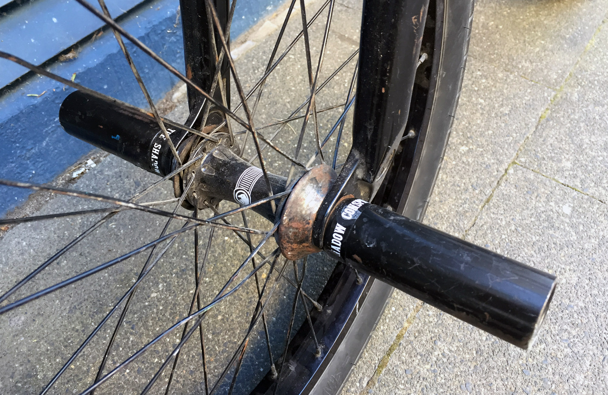Rahmen: Subrosa Noster III in 21,15″ Gabel: The Shadow Conspiracy Inceptiv Lenker: Subrosa Noster in 8,75″ (28″ breit) Griffe: Shadow Gipsy Lenkerenden: The Shadow Conspiracy Bremsen: nein Vorbau: The Shadow Conspiracy Ravager (Toploader) Steuersatz: The Shadow Conspiracy Sattel: The Shadow Conspiracy Tripod (Prototyp) Sattelstange: The Shadow Conspiracy Tripod Kurbel: The Shadow Conspiracy Killer in 175 mm Tretlager: The Shadow Conspiracy Pedale: The Shadow Conspiracy Ravager Kettenblatt: Subrosa Magnum Übersetzung: 28/9 Kette: The Shadow Conspiracy Interlock Reifen: The Shadow Conspiracy Strada Nuovo Laufräder: komplett von The Shadow Conspiracy Pegs: The Shadow Conspiracy Little Ones (Metall) Modifikationen: keine Reifendruck: sehr niedrig Gewicht: Da bin ich nicht sicher. Vielleicht 11 der 12 kg? Körpergröße: 1,8 m