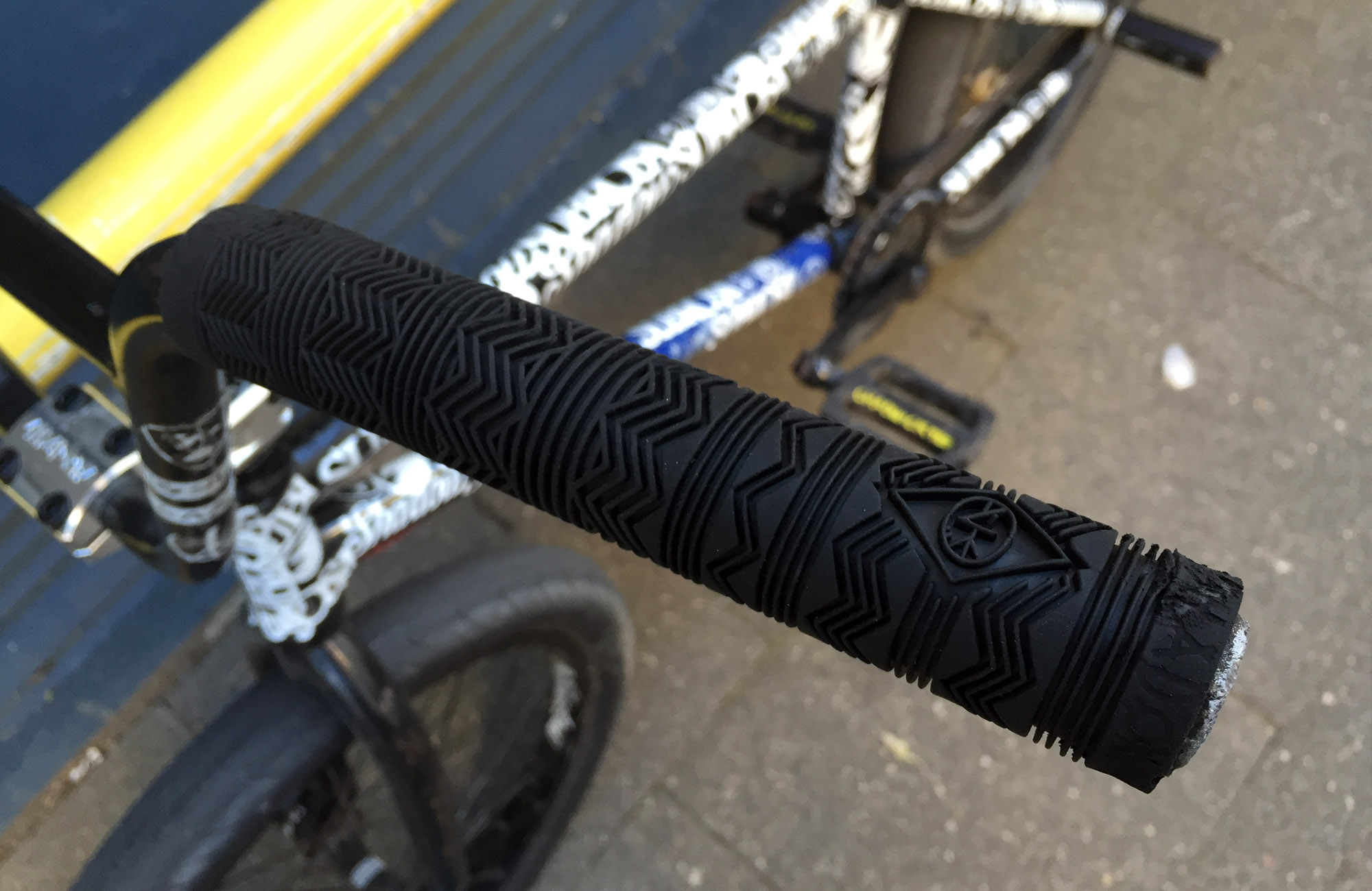 Ich habe meine Pedale bekritzelt, damit ich im Dunkeln weiß, welches die gute Seite ist, die ich noch nicht runtergegrindet habe.