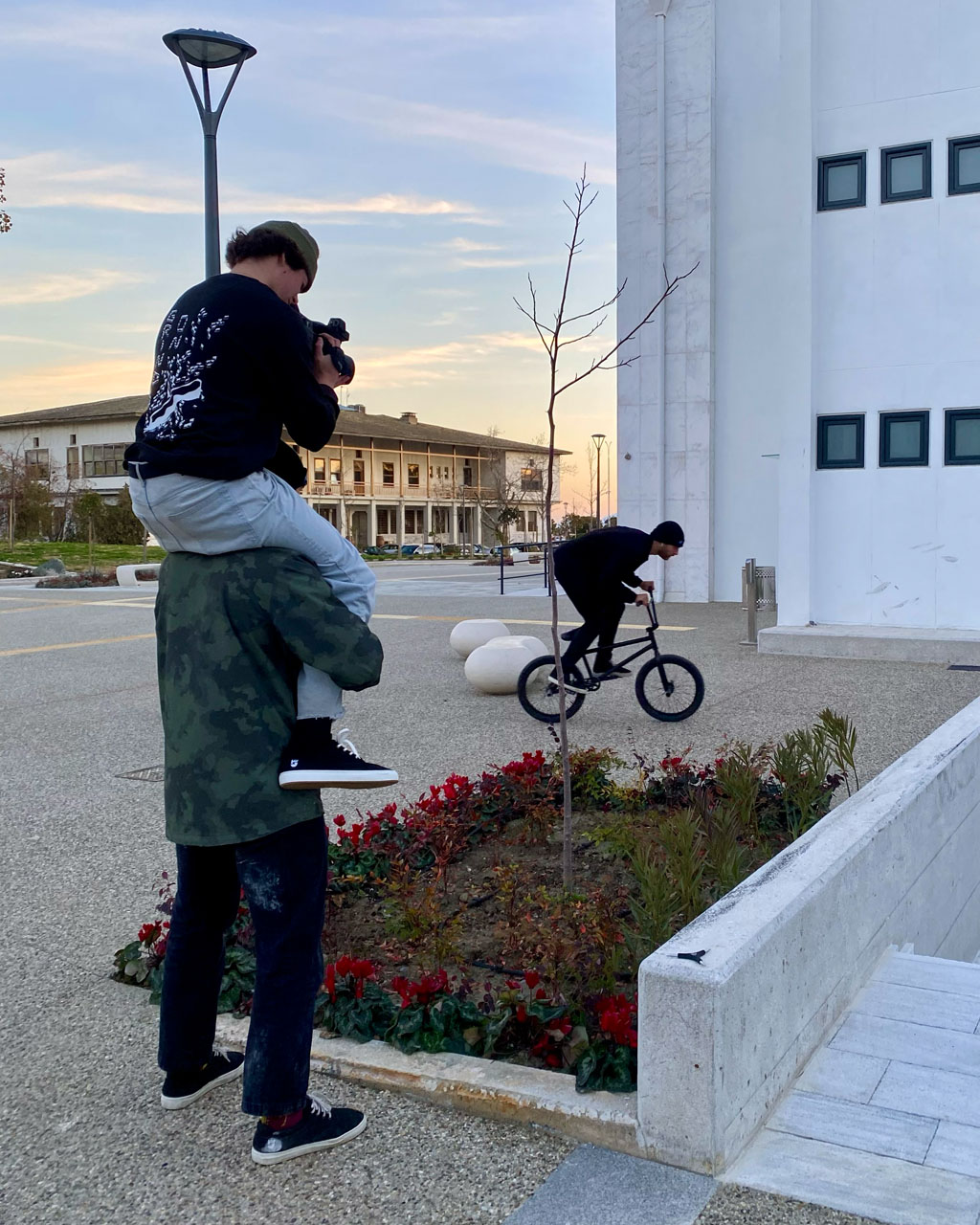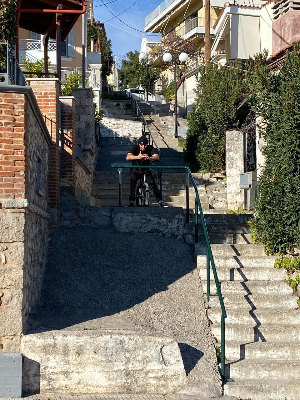 Die Reisegruppe bestand aus Hristo, Magic, Boyan und Bobi, dem Filmer. Die Route war Sofia – Thessaloniki – Volos – Lamia – Athen. Insgesamt 9 Tage, davon 4 in Athen. Wir hatten das Glück, während der gesamten Reise wunderbares Wetter zu haben, sodass wir auch den Strand genießen und insgesamt ein wirklich gute Zeit hatten. Ein großes Highlight war das gemeinsame Leben zu viert im Wohnmobil. BMX fahren und filmen von morgens bis abends! Es war sehr aufregend und produktiv, weil jeder alles gab. Ich persönlich habe noch nie in so kurzer Zeit so viele Tricks auf ernsthaften Streetspots gemacht, wie auf diesem Trip.